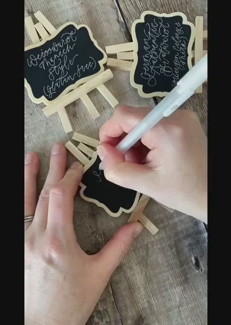 Découvrez le Chevalet Mini Tableau Noir Personnalisé, un outil pratique et esthétique pour tous vos besoins d’affichage. Que ce soit pour un menu de café, une étiquette produit, un panneau de bienvenue ou une décoration de table, ce mini tableau noir se distingue par son style artisanal et sa personnalisation à la main.
