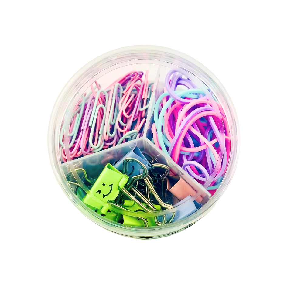 Transformez votre bureau en une terre magique avec le Pack licorne pastel ! Incluant trombones, pinces à clip et élastiques , ce Pack apporte une touche de fantaisie et de couleur à votre espace de travail. Ajoutez un peu de magie à votre quotidien avec ce Pack ludique et pratique!