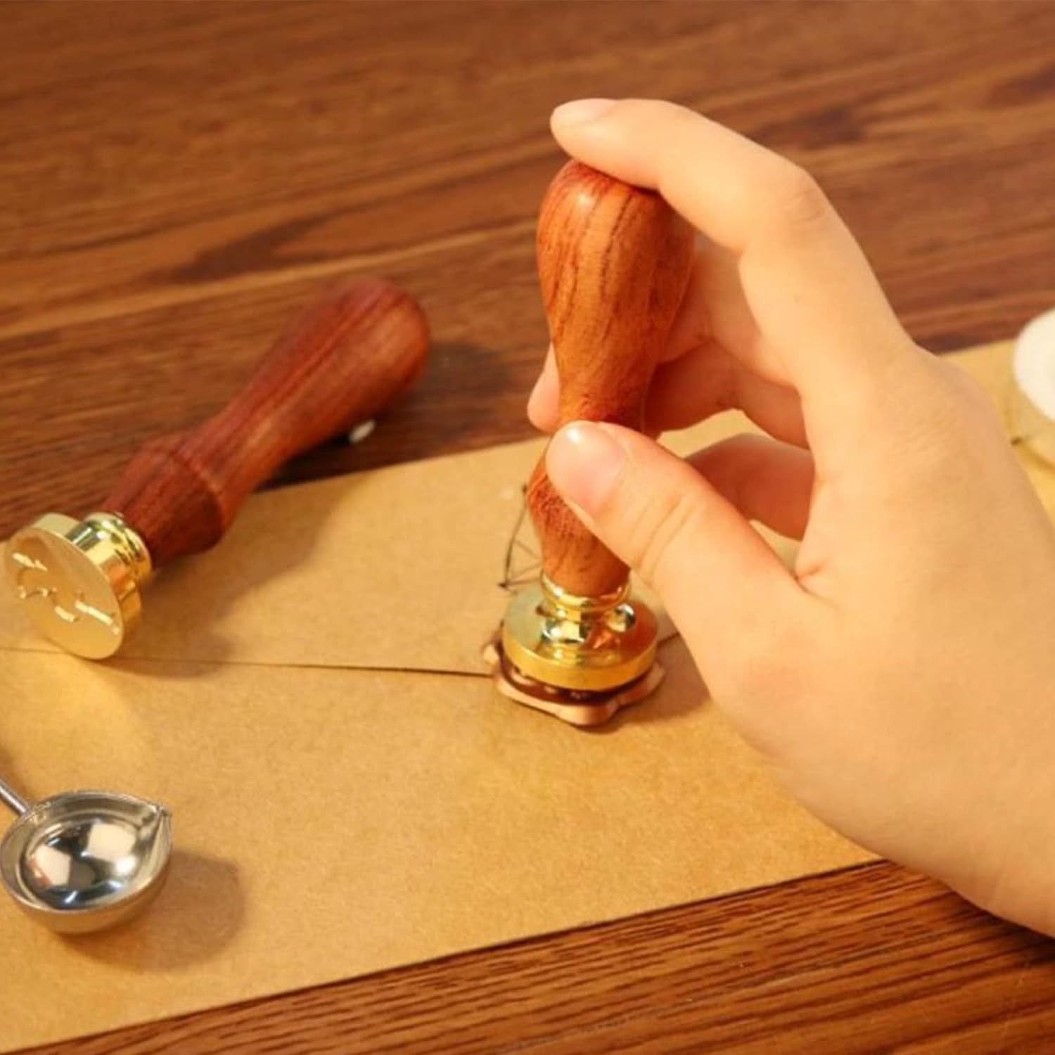 🔖 Tampon Cire à Cacheter Personnalisé – Élégance Rétro & Qualité Supérieure Coffret Tampons en Cire Vintage – 7 Pièces avec Têtes en Laiton & Poignée en Bois Élégante