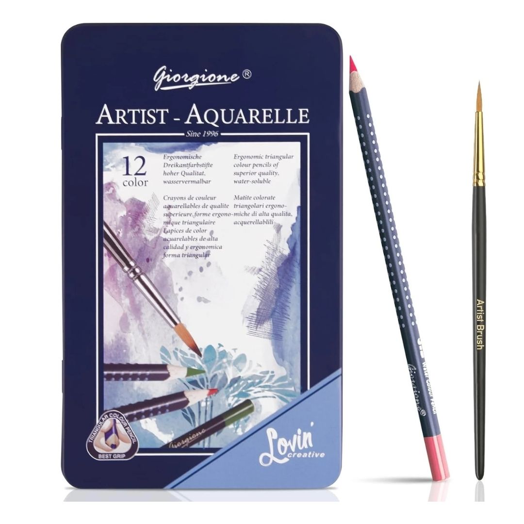 Crayons Aquarellables Giorgione – Set de 12 | Crayons Artistiques Solubles à l’Eau