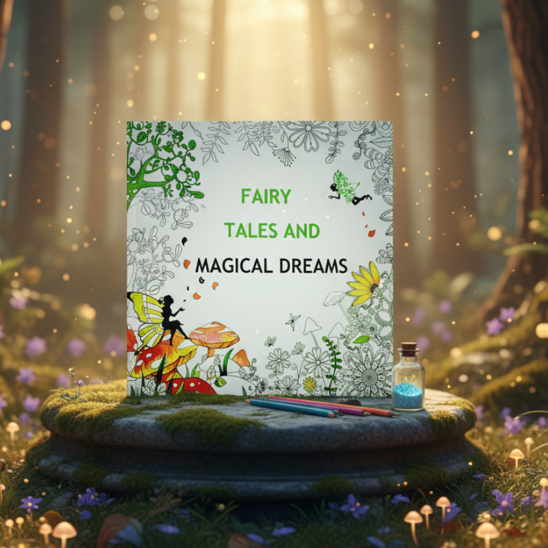 Découvrez Fairy Tales and Magical Dreams, un livre de coloriage captivant qui vous transporte dans un univers féérique rempli de princesses, créatures magiques, châteaux enchantés et paysages oniriques.