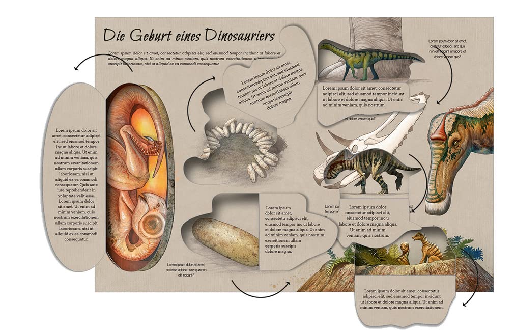 ارْفَعِ الطَّيَّاتِ وَاكْتَشِفْ أَسْرَارًا لا تُصَدَّقُ وَغَيْرَ مُتَوَقِّعَةِ، وَحَقَائِقَ مُثِيرَةً لِلاهْتِمَام حَوْلَ الدَّيْنوصوراتِ. هَلْ أَنْتَ مُسْتَعدُّ للانطلاق في مُغامَرَةٍ كعالِم أَحافير؟
