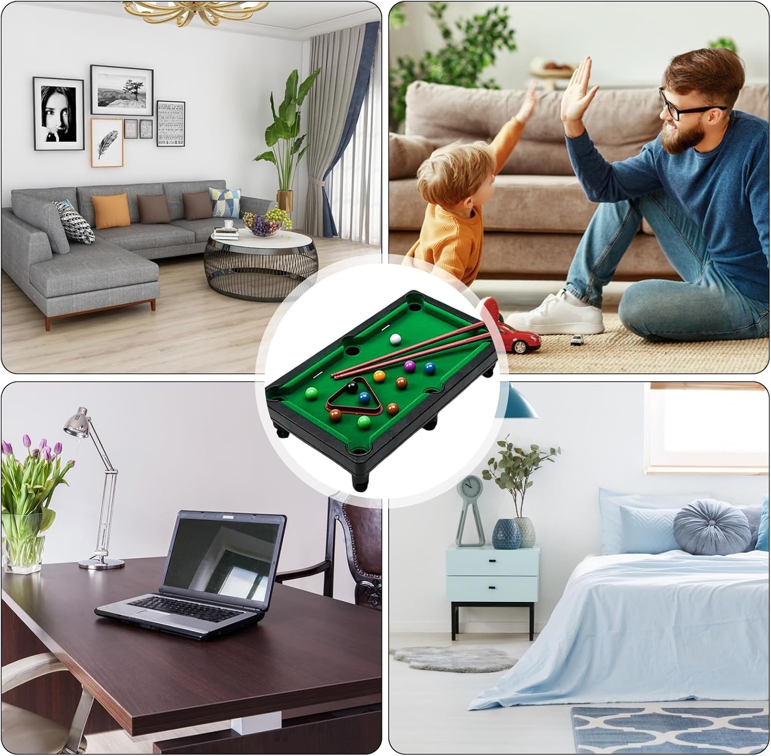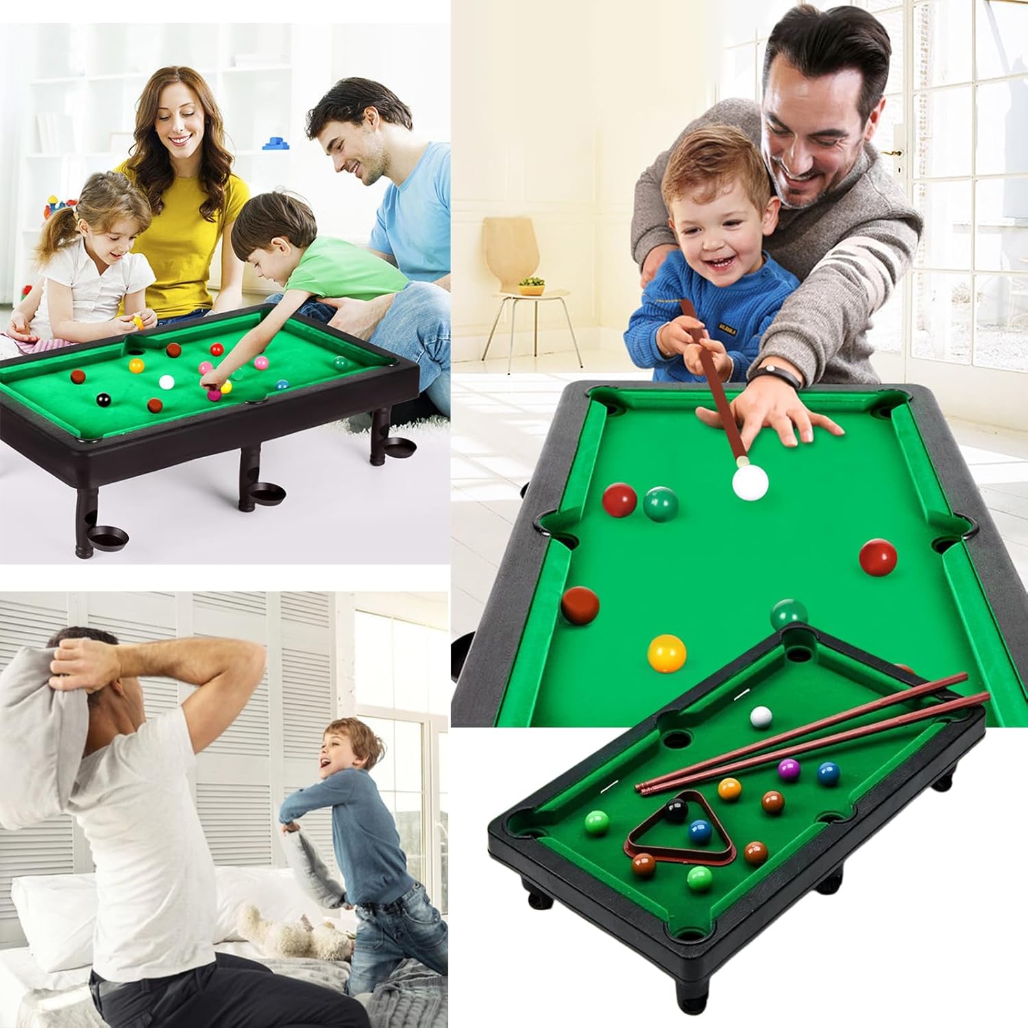 Ce jeu favorise la coordination main‑œil, l’esprit de compétition sain et la concentration tout en créant des moments de plaisir en famille ou entre amis. Facile à installer et à manipuler, cette table de billard miniature est un excellent choix de cadeau ou d’activité pour les journées à la maison.