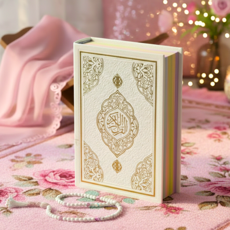 اكتشف القرآن الكريم بصفحات ملوّنة 20/14 سم ، طبعة تجمع بين الجمال، الراحة والروحانية. يتميّز هذا المصحف بتصميم راقٍ مع غلاف مزخرف وحواف صفحات متعددة الألوان، مما يجعل التصفّح أسهل وتجربة القراءة أكثر سلاسة وتركيزًا.