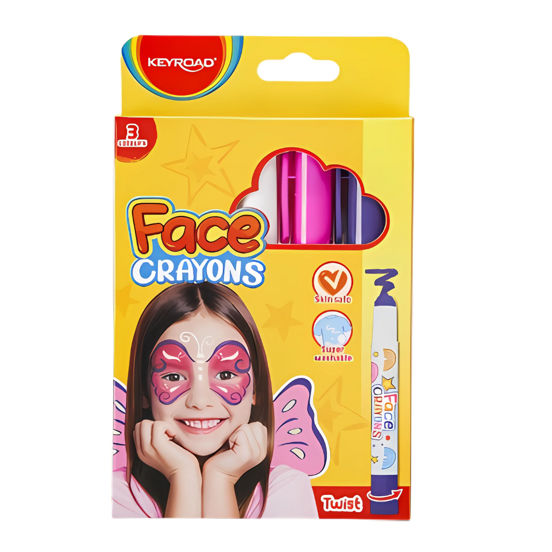 🎨 Coffret de 3 crayons de cire pour maquillage facial ✨ Ce coffret contient 3 couleurs vives (Blanc, Rose, Violet) de crayons spécialement conçus pour la peinture faciale lors d’activités récréatives et artistiques 🖌️🎭.