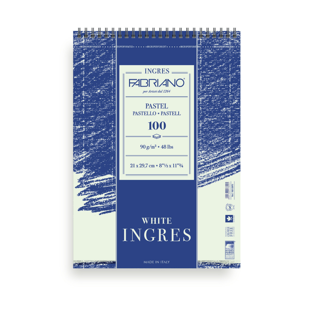 Découvrez le Bloc de pastels blancs Fabriano Ingres Bianco A4, un papier de fabrication italienne renommé mondialement par les artistes depuis 1264. Conçu spécifiquement pour les techniques sèches, ce papier "White Ingres" possède une surface vergée unique qui permet de superposer les couches de couleurs tout en conservant une grande précision dans les détails.