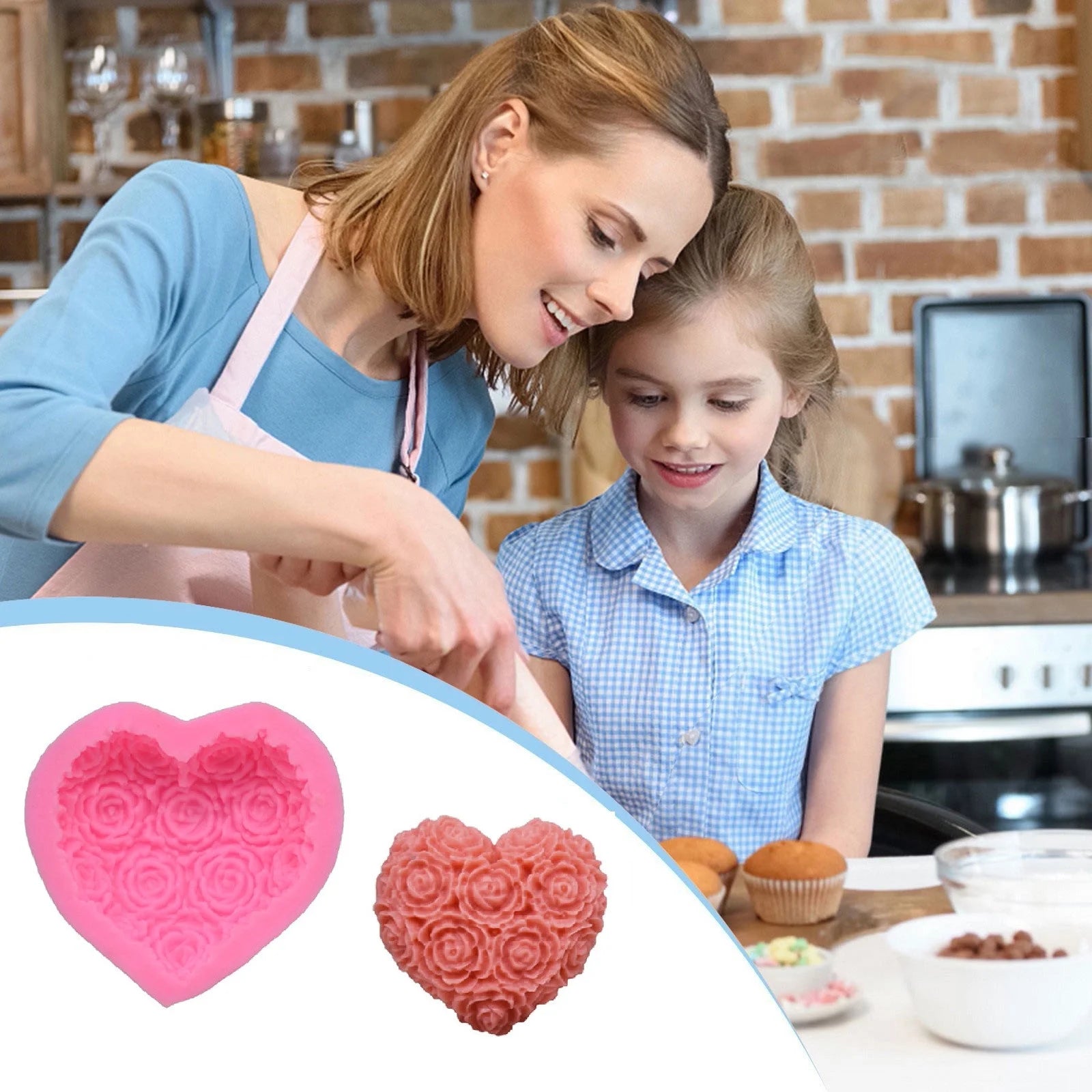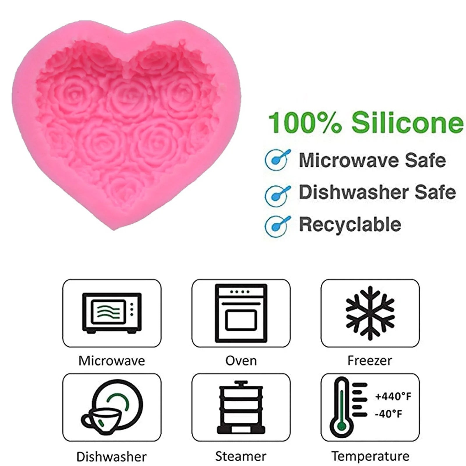 Moules en silicone en forme de rose pour la pâtisserie, moule à savon en silicone en forme de rose en forme de cœur, moule à fondant en silicone en forme de rose en forme de cœur pour la décoration de gâteaux, chocolats, bougies, bombes de bain, barres de lotion, petites bougies décoratives.