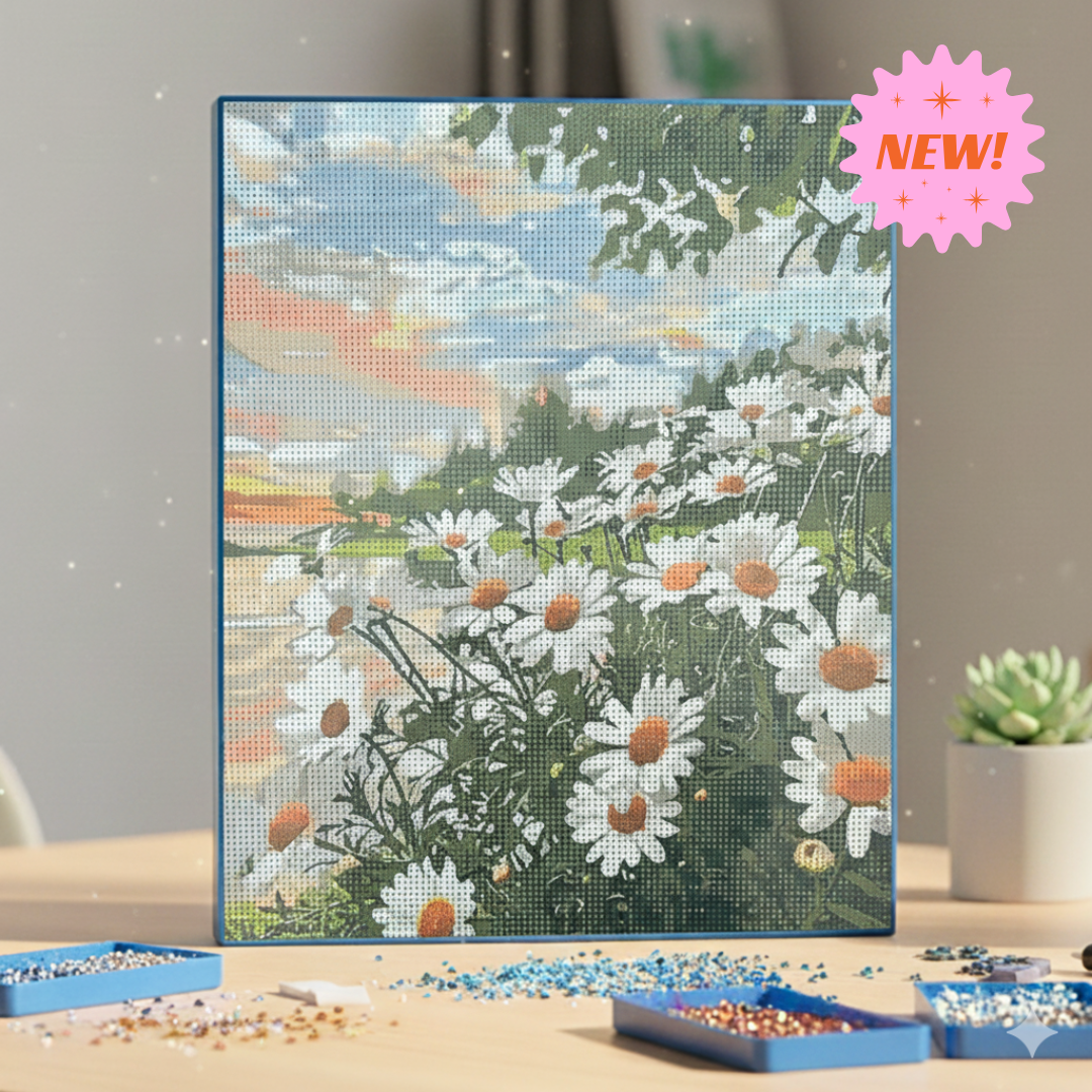 Ce kit complet transforme chaque instant en expérience apaisante. En plaçant les diamants un à un, vous verrez peu à peu apparaître une scène éclatante de fleurs et d’océan — parfaite pour les amoureux d’art, de déco et de DIY.