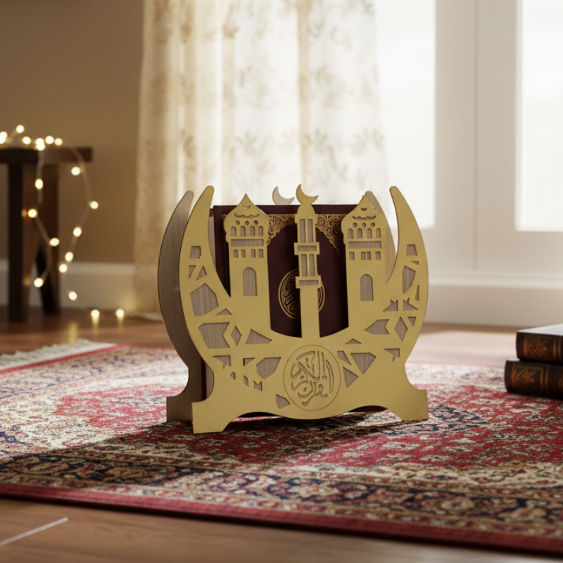 يمكن استخدامها كصندوق عرض فاخر للمصحف الكريم أو كعلبة تقديم راقية تضيف لمسة جمالية وروحانية للمكان.