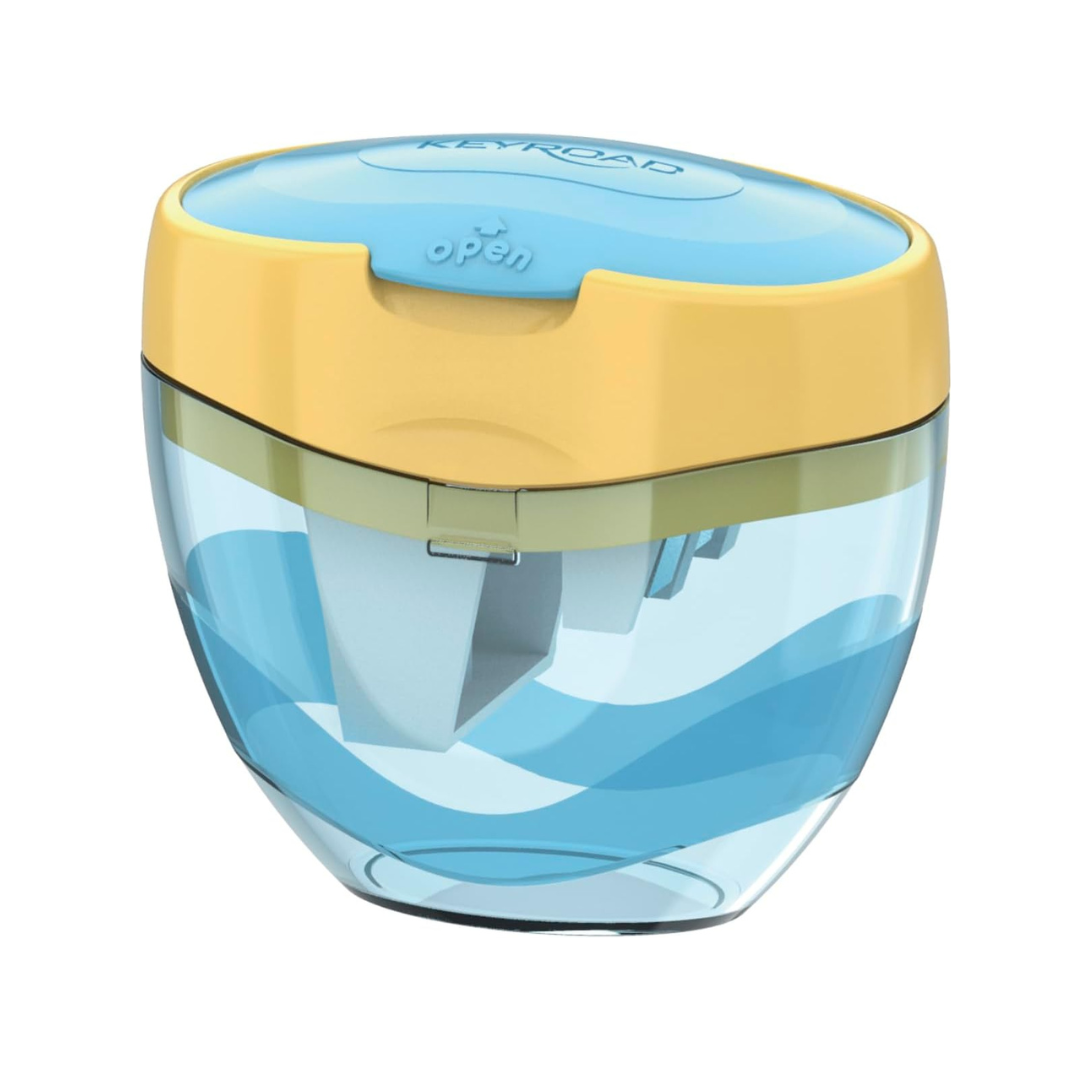 Keyroad TRI à 3 trousAffûtage fluideFacile à utiliserMatériau de qualitéPosition précise de la lame pour éviter la casse de la mineCouleurs : bleu-rose, jaune-bleu, violet-rose