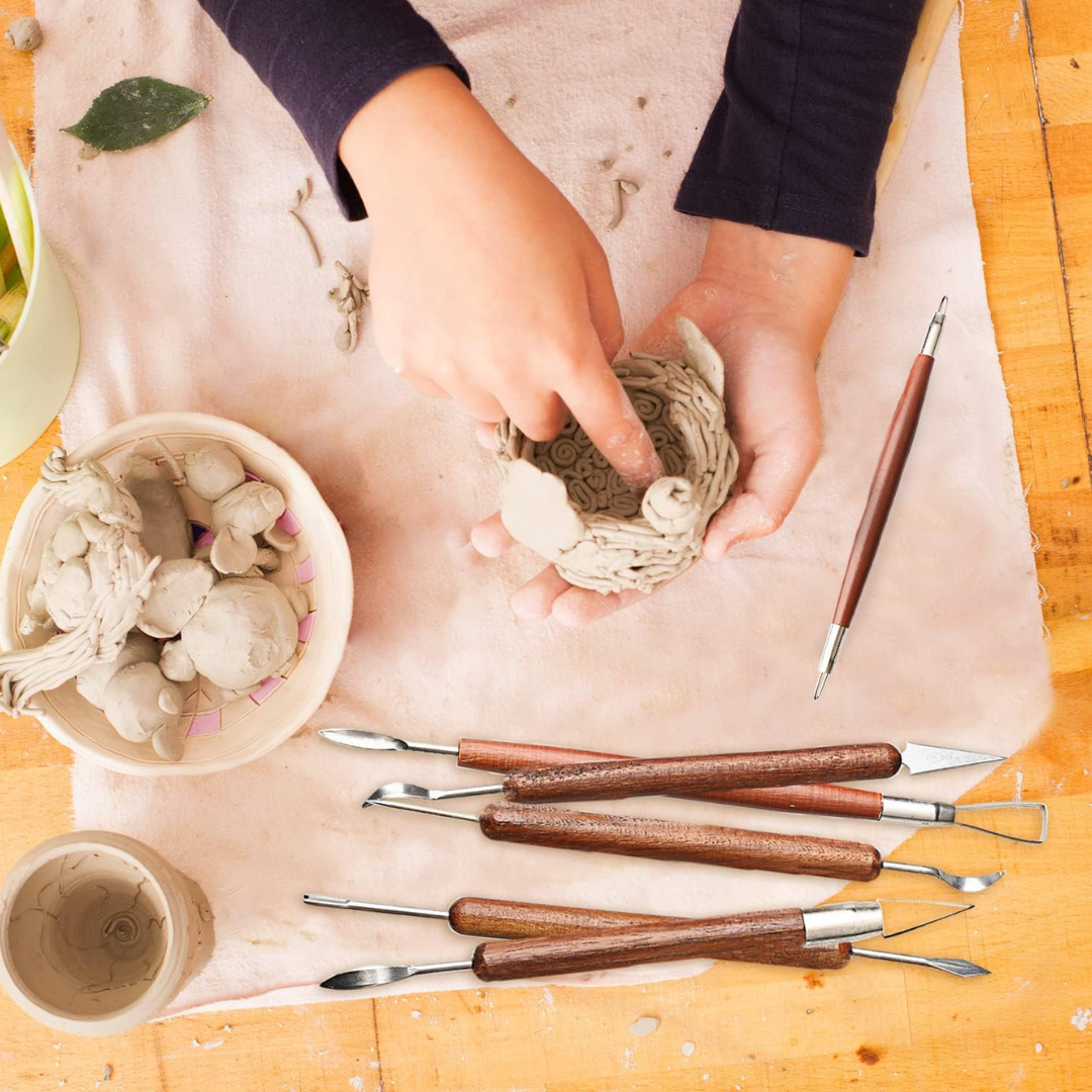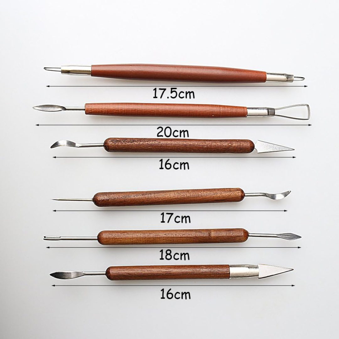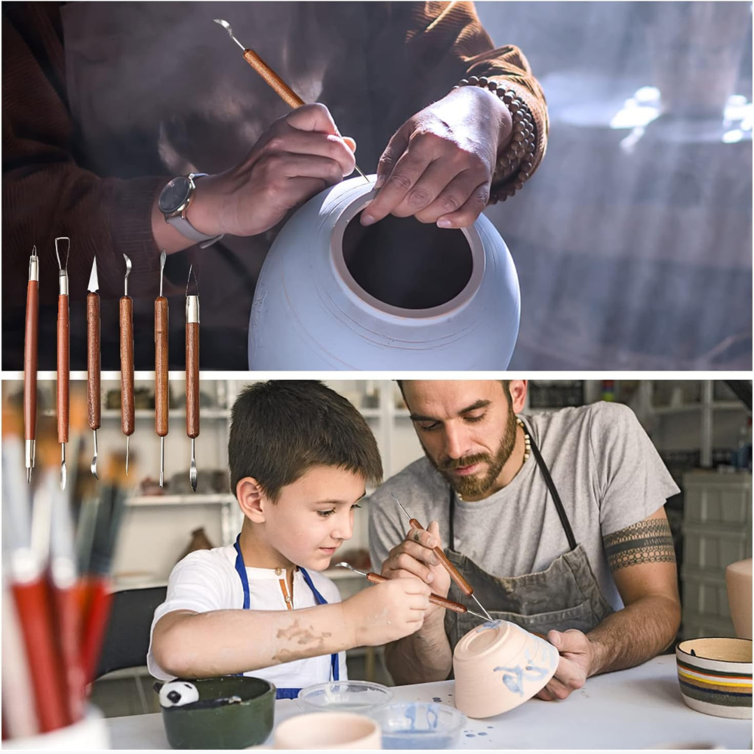 Lot de 6 Outils de Sculpture d’Argile – Poignée en Bois Double Face