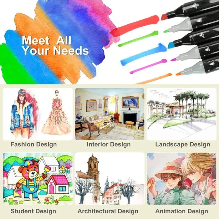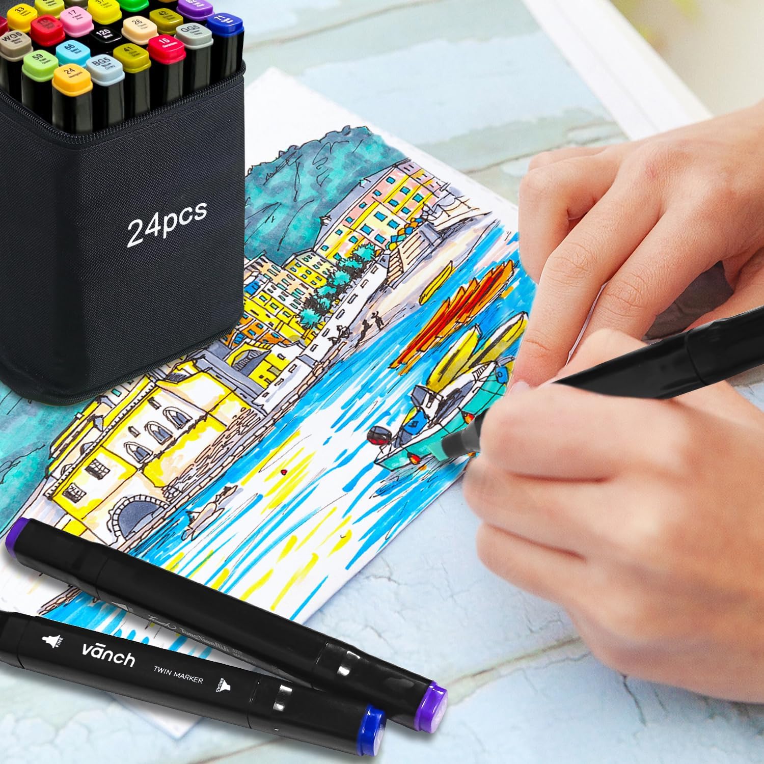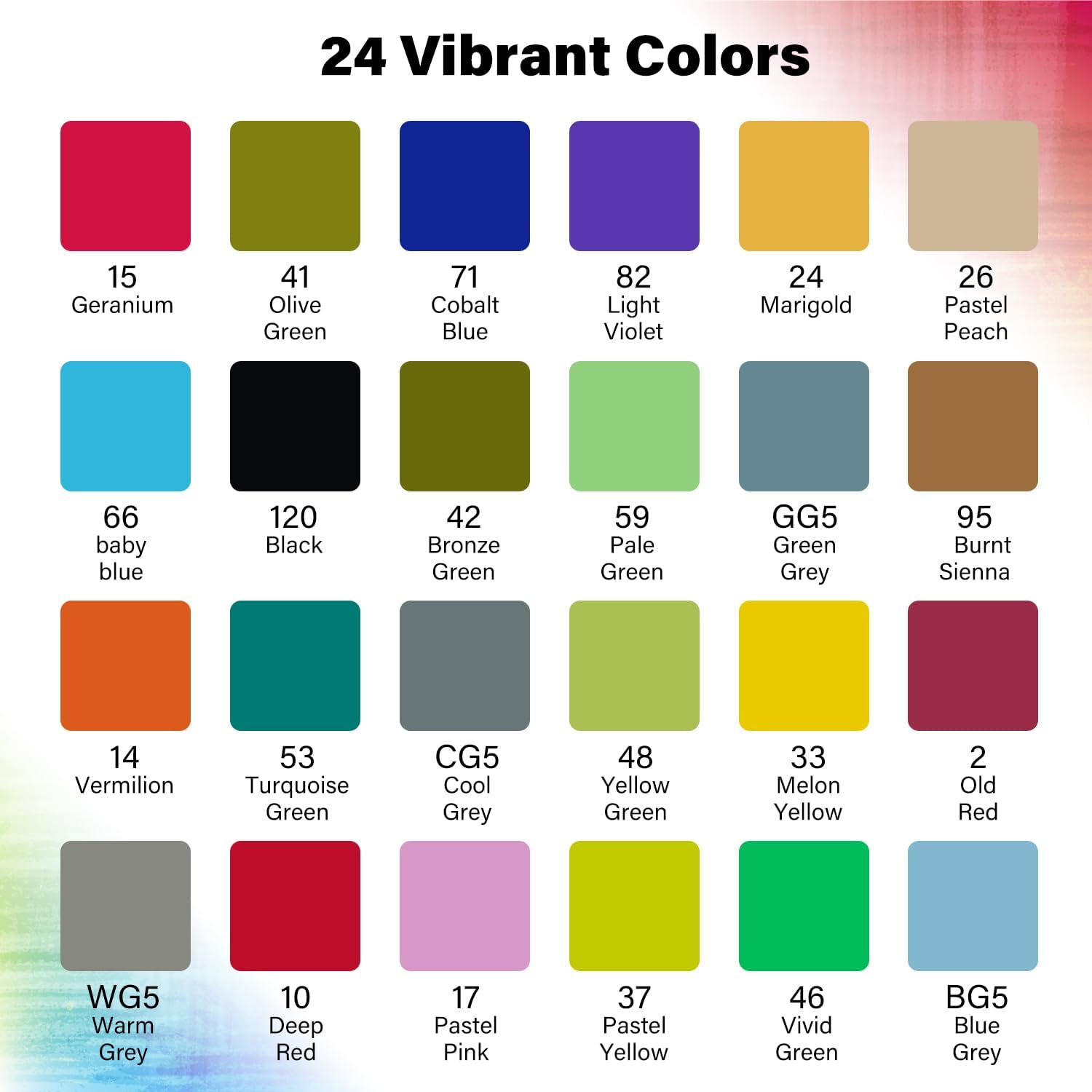 🎨 Idéal pour les artistes et enfants créatifs : Ce set complet de 24 marqueurs à alcool à double pointe est parfait pour le dessin, le coloriage, le scrapbooking et le croquis.