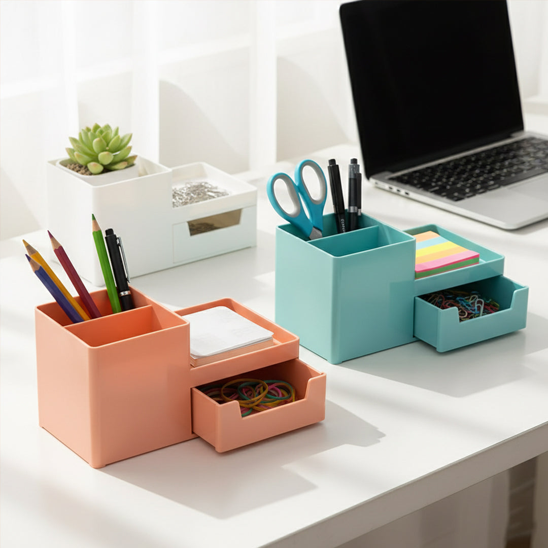 Gardez votre espace de travail propre et organisé grâce à ce porte-stylos multifonction au design moderne. Fabriqué en plastique durable, il combine praticité et style minimaliste pour s’adapter à tout type de bureau, que ce soit à la maison, à l’école ou au travail.