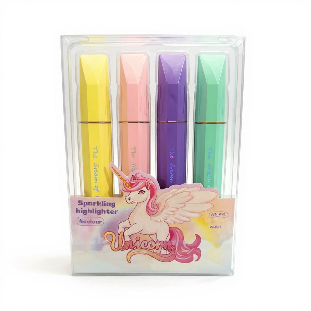 4 Surligneurs Pailletés Licorne - Pastel | Fournitures