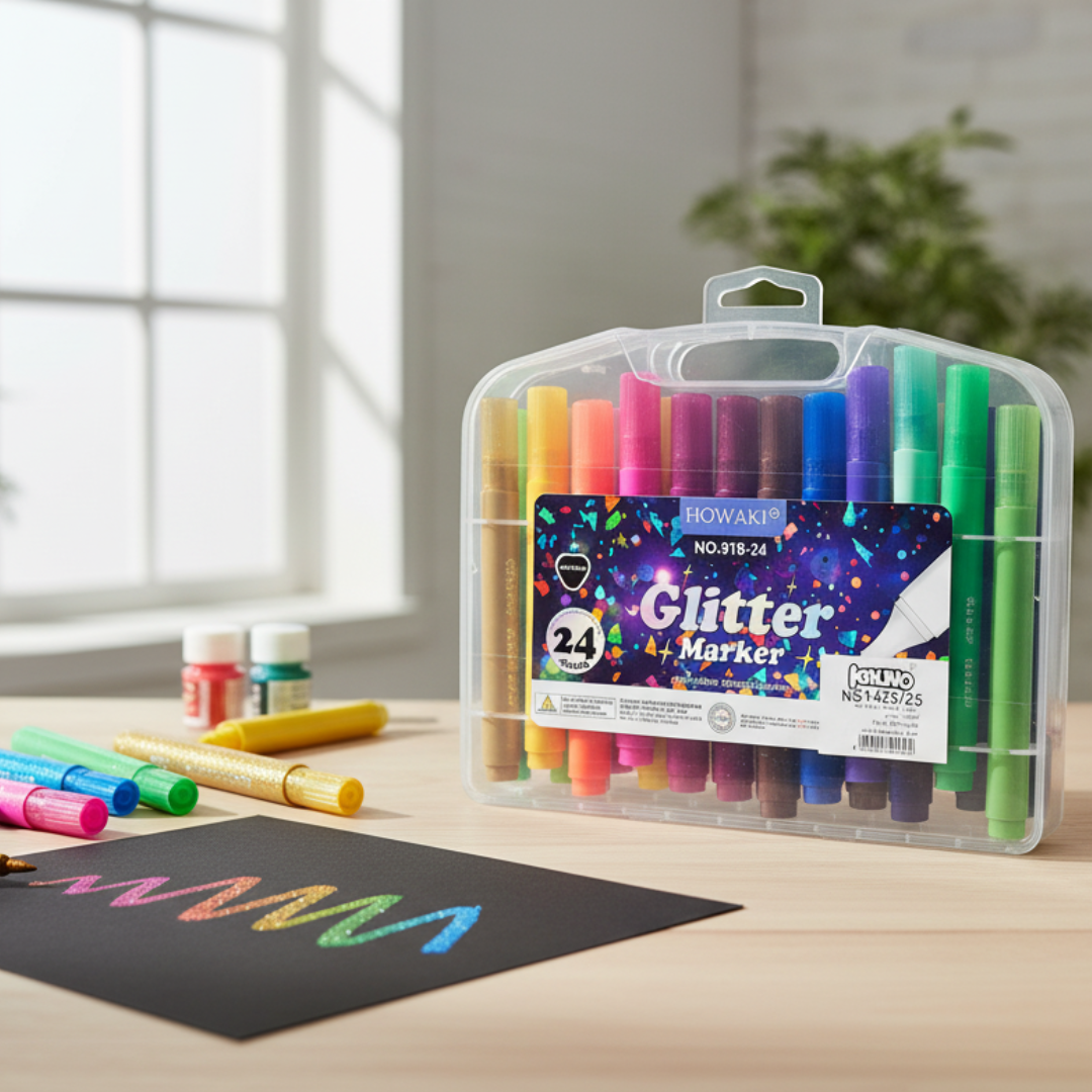 Découvrez l'Ensemble de 24 Marqueurs Pailletés Howaki Glitter Marker (No. 919-24), l'outil parfait pour ajouter une touche de magie et de brillance à tous vos projets artistiques. 🎨 Que vous soyez en train de dessiner, colorier, faire du scrapbooking, créer des cartes de vœux ou décorer, ces marqueurs sont indispensables.