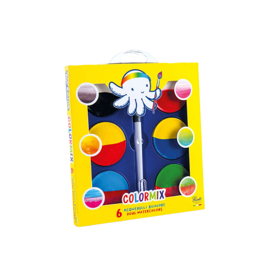 Toy Color COLORMIX – Palette de 6 Aquarelles Bicolores + Pinceau